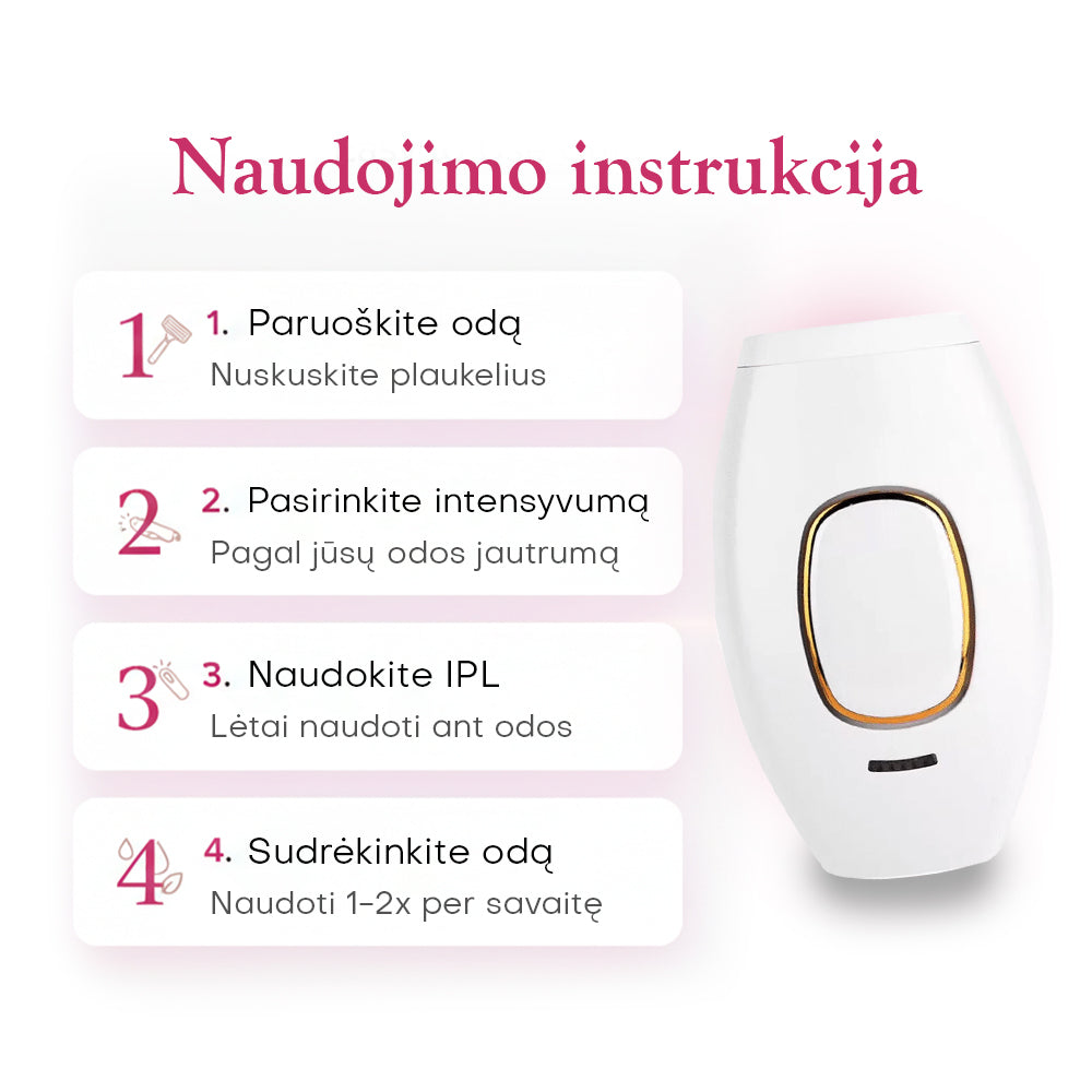 IPL galima naudoti ant kojų, rankų, pažastų, bikini zonos ir veido (išskyrus akių bei antakių sritį).